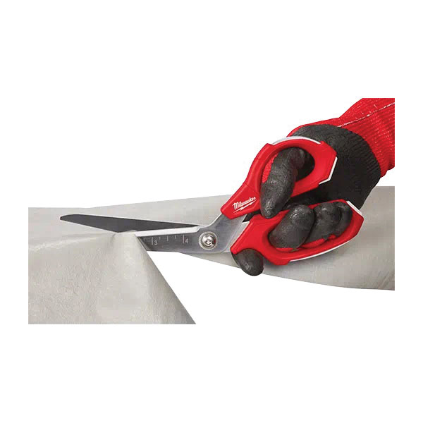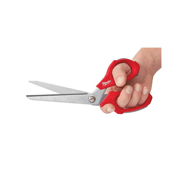 Our jobsite offset scissors feature all metal handles for added durability and up to 10X longer life. The construction scissors include a serrated cutting edge for increased force and grip. MILWAUKEE® bolt lock technology prevents blades from loosening to ensure precision cutting. For added precision, ruler markings are on the front of the blades. We back these durable scissors with a limited lifetime warranty.
