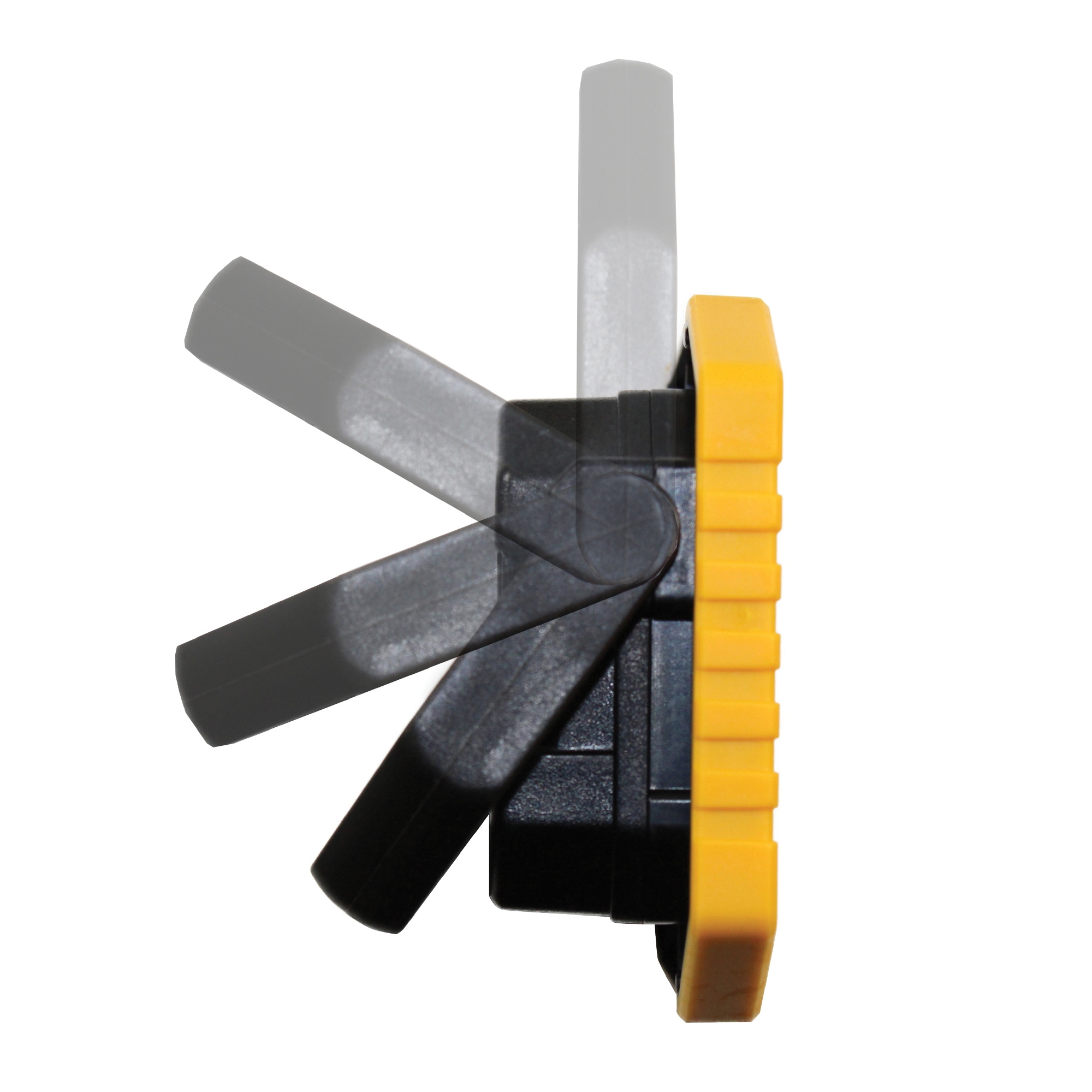 This LED work light is versatile and can be carried or propped up to shine its flood light on any work area. It provides ample lighting with its long-lasting COB LED technology up to 6 hr on low and 3 hr on high. With its easy-grip handle the user can transport this lightweight yet extremely bright light with ease. And the handle also doubles as a 180 deg rotating stand. Durable and work-ready, this light is ideal for a variety of applications.