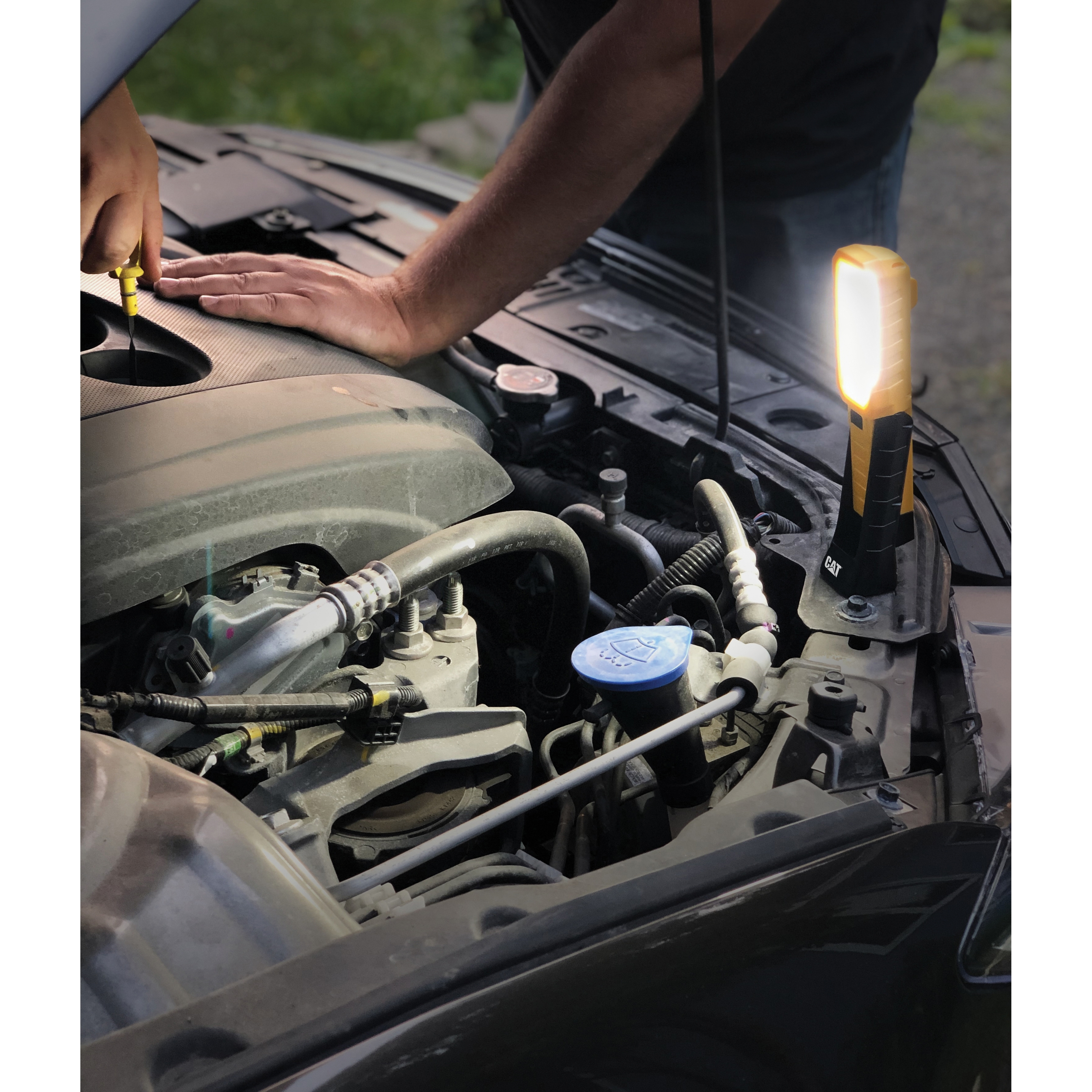 The swing arm LED work light will brighten any job. Its 180 deg handle, with magnets, makes it our most versatile task light yet. Two brightness settings feature powerful LED technology to produce up to 250 Lumens on high and 150 Lumens on low. Its compact and lightweight design makes portability and storing easy. This light will last up to 8 hr on three AA batteries (included).