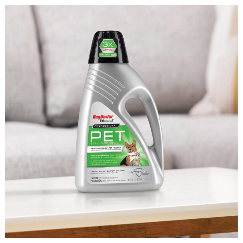 Clean your carpet with the power of the pros with our triple action pet stain and odor carpet and upholstery cleaner.