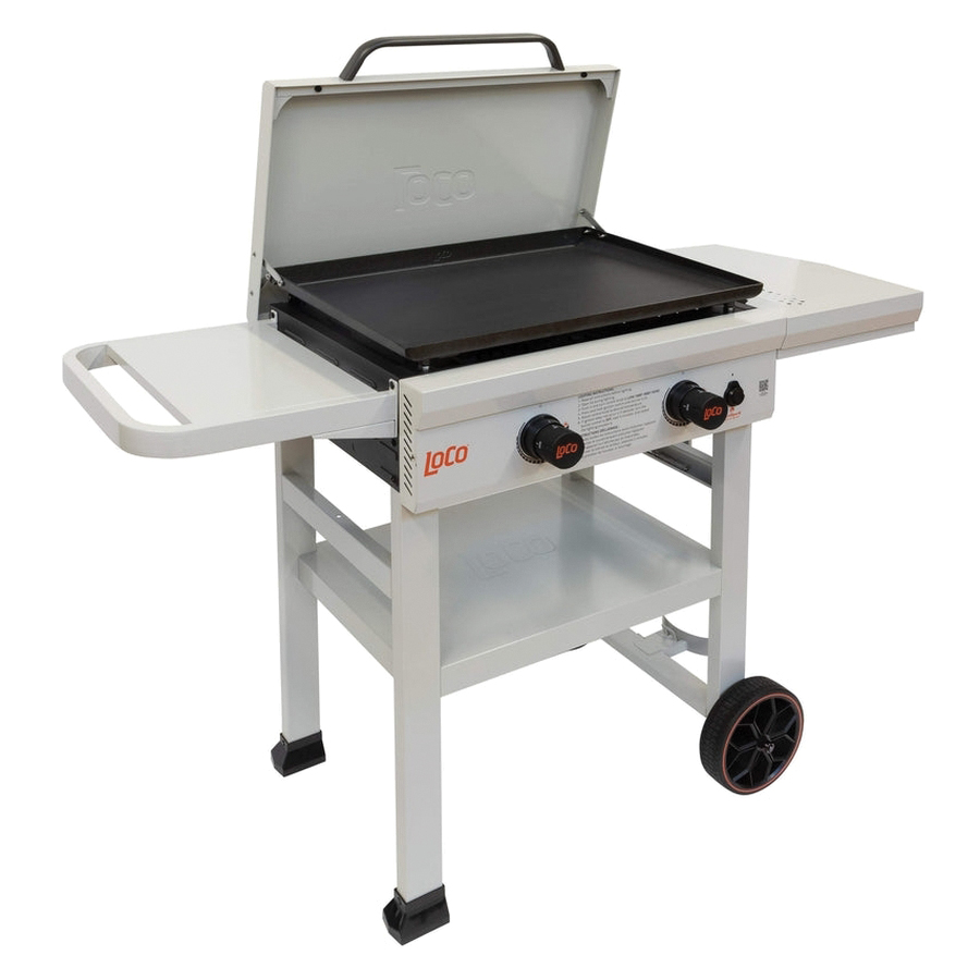 LoCo SmartTemp Classic Griddle, Gas Type: Propane, Primary Cooking Surface Area: 467 sq-in, Cooking Surface Width: 26 in, Number of Burners: 2, Storage Type: Rack, Ignition Type: Electrical, Thermometer Included: Yes, Side Shelf Included: Yes, Temperature Rating: 250 to 450 deg F, Chalk 32,000 btu