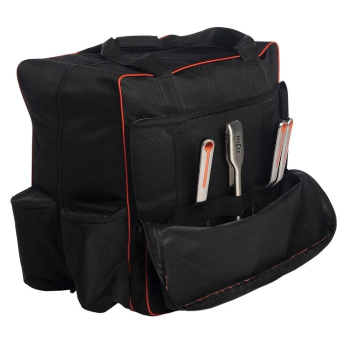 - Two-zippered side pockets hold 1 lb propane bottles
