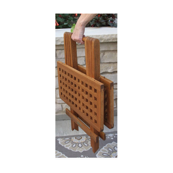 Outdoor Interiors 10070 Side Table, 20 in W, 20 in D, 19-1/2 in H, Eucalyptus Frame, Eucalyptus Table, Foldable