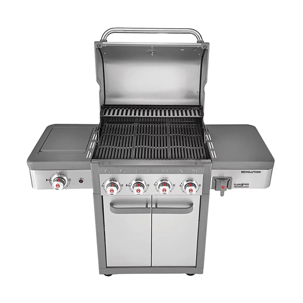 The Coleman Revolution™ 4-burner barbecue sets a new standard for outdoor cooking. Featuring patented Flare-Free Technology™, this barbecue captures and removes 75% more grease, eliminating flare-ups, hot spots and ensuring no more burnt or overcooked food. Double-stacked cooking grates offer double the heat retention while efficiently directing fats and grease to the removable front grease cup through the front grease channel. Lighting is never a problem with its Instastart™ ignition, providing flawless operation even in the harshest environments. The Coleman Revolution™ 4-burner barbecue is equipped with the Convertible Valve System™, making it easy to convert from propane to natural gas.