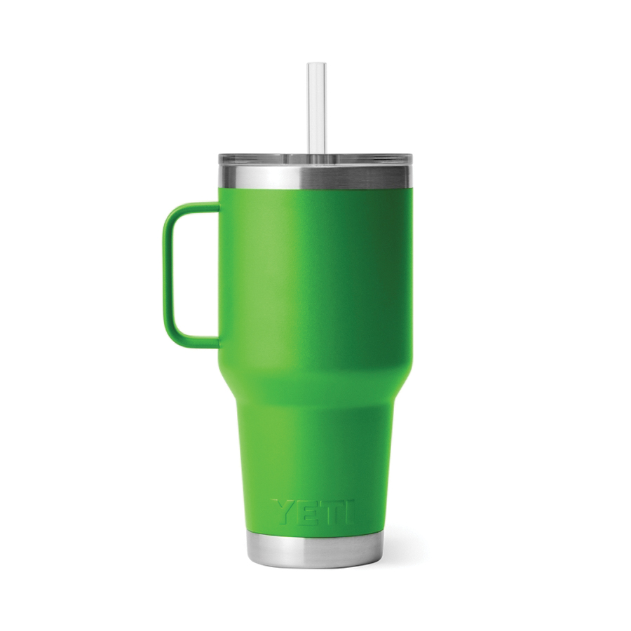 An oversized cup holder friendly mug that comes with the last straw you'll ever need. Built to house 35 oz of your favorite cold beverages, this is one hefty hydrator. Supremely insulated and made with an elevated handle and a cup holder compatible design, it goes excellent with overly large cold brews, cross-country trips and absolutely massive mocktails. And with our fan-favorite straw lid, you can say goodbye to single-use plastic straws. Our Rambler drinkware and lids are built to last, shatter-resistant, dishwasher-safe and BPA-free. The straw lid has a molded-in stopper so your straw stays safely in place. Additionally, this mug is compatible with our MagSlider™ lid. Do not use the Rambler® tumbler straw lid with hot beverages.