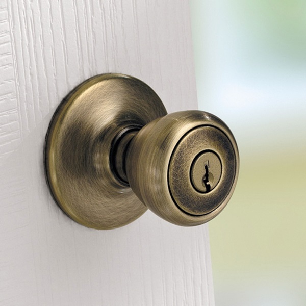 Kwikset 400T 5 6AL RCS K3 Entry Knob, Bell, Tylo, Antique Brass, Zinc, K3, KW1 Keyway, Residential, 3 Grade