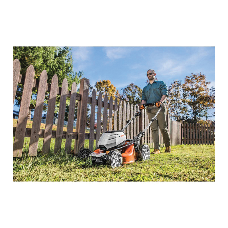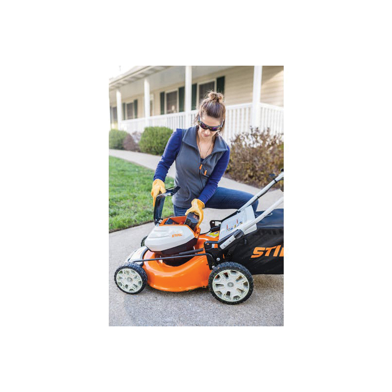 The STIHL RMA 460 is the first lawn mower in the AK system, rounding out a full line of products to complete tasks around the lawn. This lawn mower is compatible with the AK 20 or AK 30 battery, providing homeowners with performance options based on yard size. With a 19 in steel mowing deck, the RMA 460 is highly maneuverable for quick and efficient grass cutting with each pass. Mow the length of 14 football fields on a Single Charge® with its 15.85 gal grass catcher allowing for more grass cutting and less stopping. The RMA 460 is great for small to midsize yards - under a half acre and can also be used as a mulching mower. Mow up to 4390 linear ft with the AK 30 battery on a single charge. Usage claim tested and verified by an independent third party test laboratory. Runtime per charge may vary depending on usage and application.