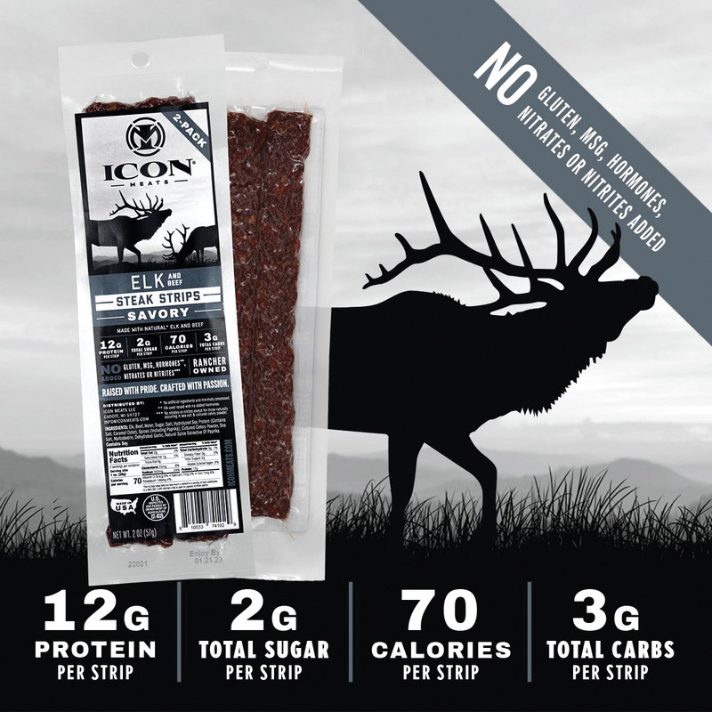 One of our specialties, Our award winning Jerky Steak Strips are raved about. Strips of elk and beef muscle meat shredded and dried to give a real jerky connoisseur the great tasting high-protein snack that they are looking for. Regenerative and natural, minimally processed with clean ingredients, no gluten, no MSG, no nitrates or nitrites, hormone and antibiotic free. Shelf stable. Our top-seller. More savory and flavorful than our Original style with a little kick of sweet pepper and Paprika, but not too spicy or hot.