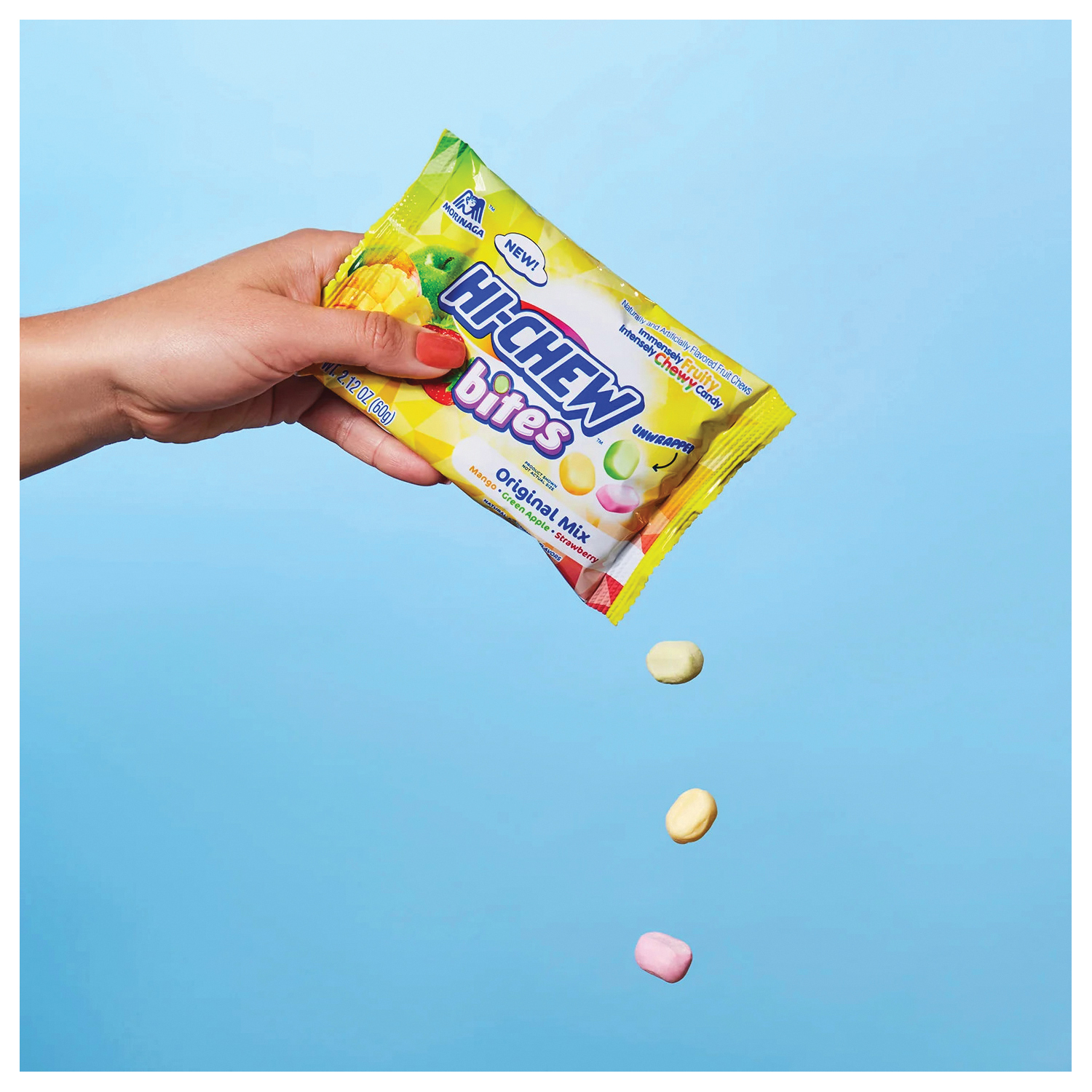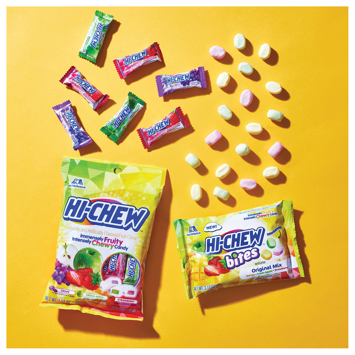 Meet the new Hi-Chew® bites, your ideal companion on the go. A new way to enjoy the same immensely fruity flavor with unwrapped chewlets.