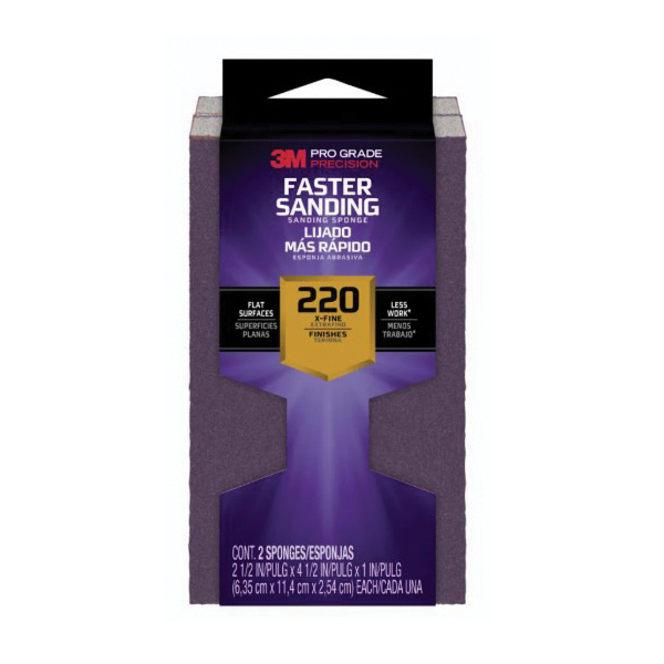 3M™ Pro Grade Precision™ faster sanding block sponge helps you get the job done fast with premium mineral. Pliable design let's you get into hard to reach places. Resists clogging for long use. Can be used wet or dry. Rinse and reuse. Comfortable, powerful the 3M™ Pro Grade Precision™ faster sanding block sponge delivers a great sanding experience in the palm of your hand. This durable sanding sponge helps you get the job done fast with premium grits and the pliable design lets you get into hard to reach places. A unique coating resists clogging for long use and this sanding sponge is ideal for wet or dry sanding. When your job is complete, simply rinse the sponge and reuse it. Get a professional result with the 3M™ Pro Grade Precision™ faster sanding block sponge.