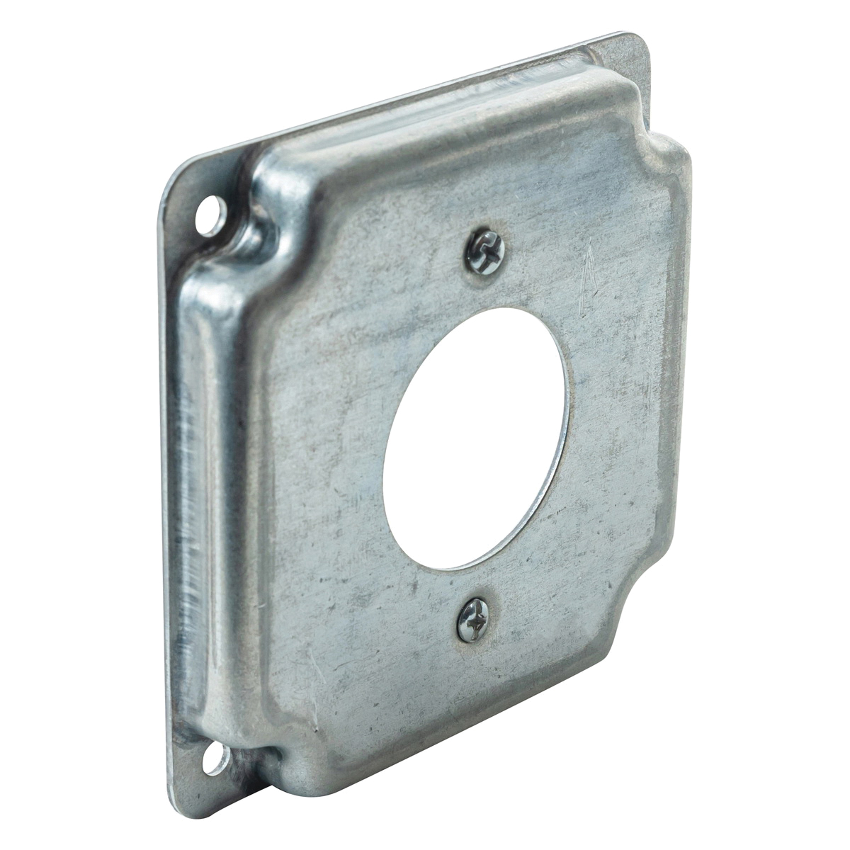Southwire Box Cover, Square, Hole Diameter: 1.594 in, Number of Gangs: 1, Steel, Galvanized, Silver, 1/2 in L, 4 in W, Includes: Mounting Hardware