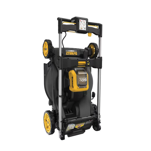 Maintain your property with the completely redesigned DeWALT mower, built from the battery up, for optimal electric cutting performance. The new 60 V max brushless push mower features the patented high-efficiency cutting system which utilizes the all new steel cutting deck design, dual blade system and autosense motor to deliver up to 80 min of runtime. The mower folds with one touch for easy storage and comes with 3-in-1 mulching, bagging and rear discharge capabilities.