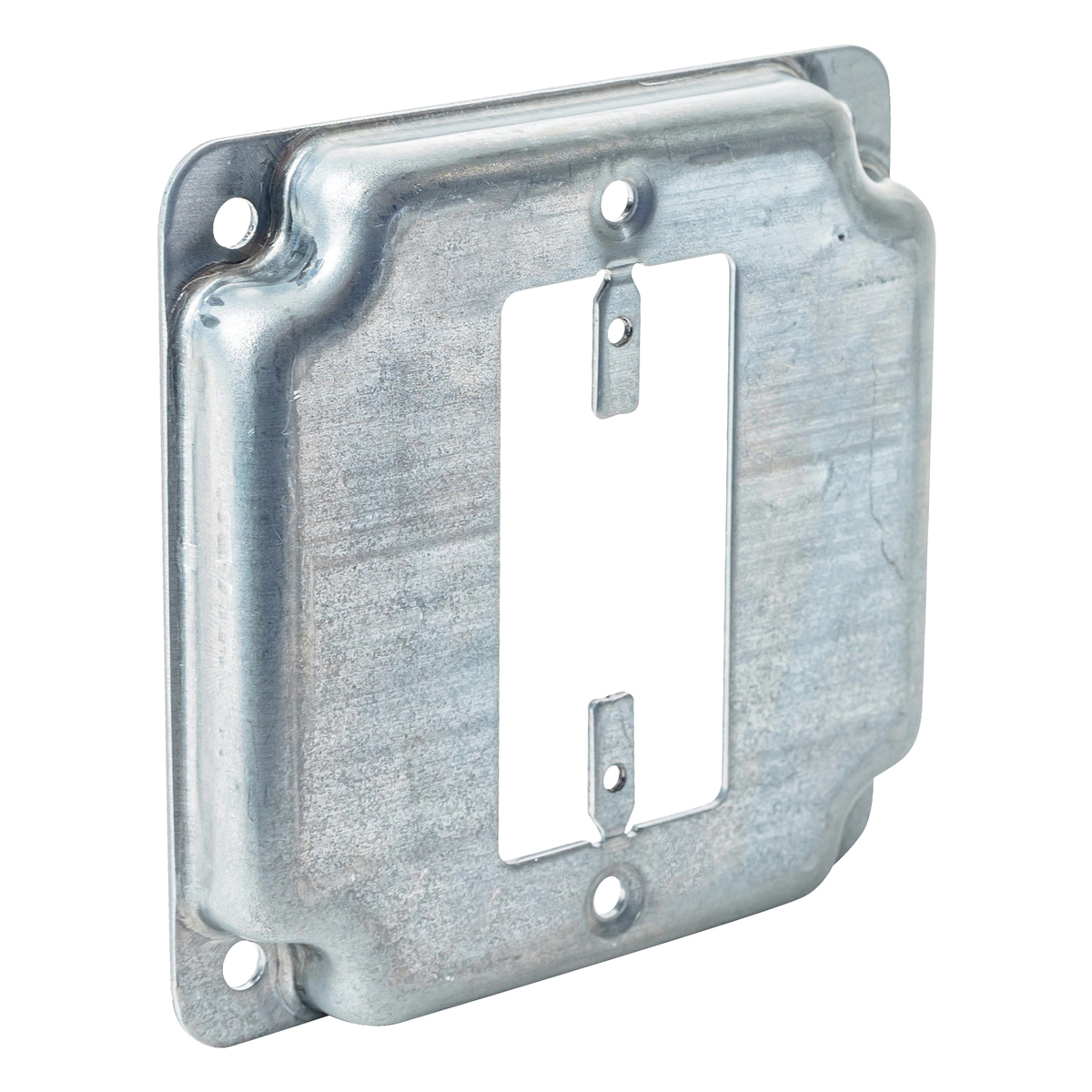 Southwire Box Cover with GFCI Opening, Square, Number of Gangs: 1, Steel, Galvanized, Silver, 1/2 in L, 4 in W, Includes: Mounting Hardware