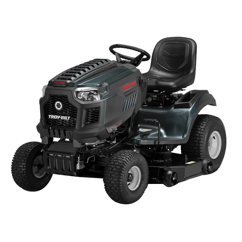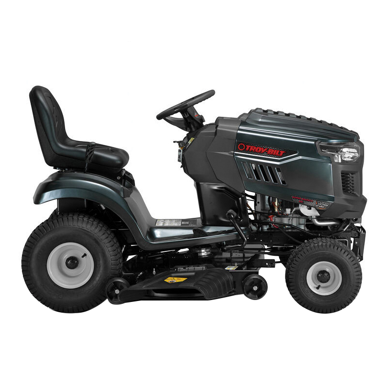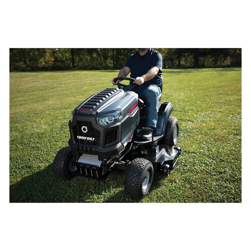 Tackle the tough jobs with a Troy-Bilt® Super Bronco™ 46K FAB XP riding mower. It features a 46 in fabricated steel deck with welded seams for durability. The convenient rear hitch lets you quickly attach tow-behind accessories, like dump carts, spreaders or aerators (attachments sold separately). You'll ride in comfort with the adjustable, high-back seat and the hydrostatic transmission with cruise control is designed for a smooth change of speed and direction. The AGM battery is designed to provide reliable starting season after season.