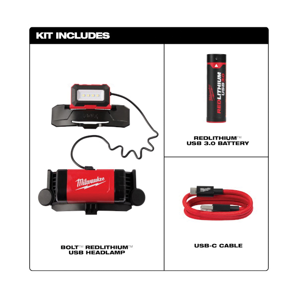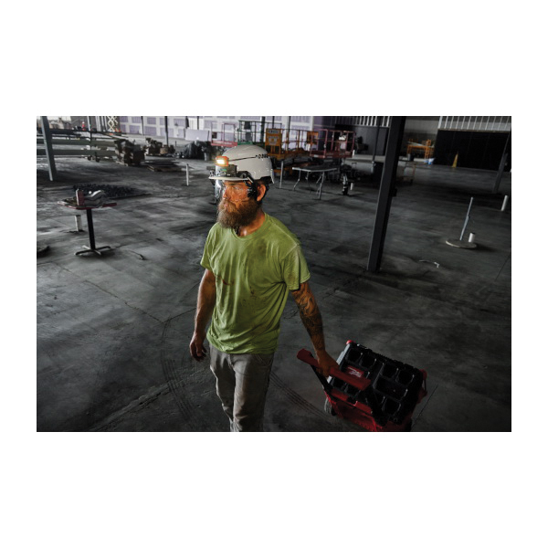 Our BOLT™ REDLITHIUM™ headlamp is a dedicated solution for our BOLT™ hard hats and helmets and is fully compatible with all BOLT™ accessories. The Milwaukee® BOLT™ headlamp offers an ultra-thin light head that allows for full functionality of any BOLT™ Face shield and visor. The headlamp delivers 600 Lumens of TRUEVIEW™ high-definition flood lighting paired with a 70 deg pivoting light head for full illumination for any task. Our rechargeable headlamp is designed with the cam lock-mounted battery pack in the rear for maximum maneuverability and security in tight spaces and a balanced design for all-day use. The Milwaukee headlamp has four-light output modes - High, Medium, Low and Eco for 32 hr of runtime to maximize light output or extend runtime. The light is IP54-rated for water and dust-resistance and can withstand up to 2M drops, surviving the toughest conditions on and off the jobsite. The BOLT™ REDLITHIUM™ Headlamp is powered by the REDLITHIUM™ USB 3.0 Ah Battery, providing all-day run-time, more recharges and 3X faster charge time. The Milwaukee® REDLITHIUM™ USB Battery can be recharged in the headlamp via USB-C or swapped out with additional REDLITHIUM™ USB Batteries for virtually no downtime. The BOLT™ Headlamp is covered by a limited lifetime warranty.