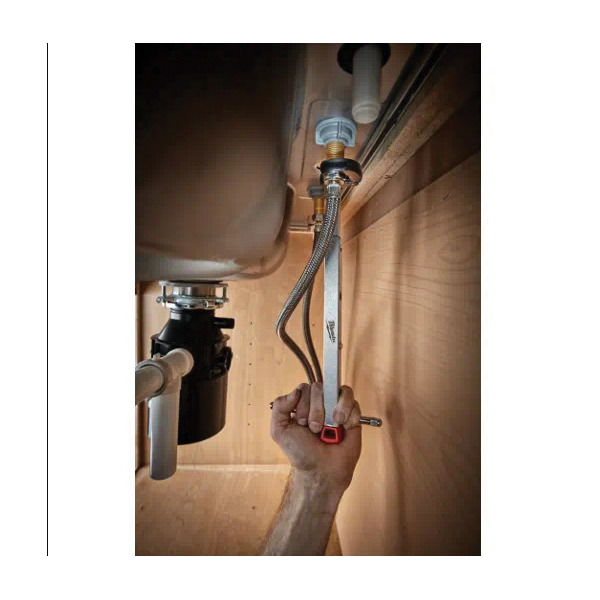 The Milwaukee 1-1/4 in basin wrench is designed for the industry's easiest basin swap-out's in under sink applications and extremely tight spaces. The Milwaukee basin wrench features an ergonomic handle, designed to fit in the palm for maximum efficiency and comfort. A new-to-world ratchet ready and screwdriver ready handle allows for maximum speed and break-away torque for difficult to remove or corroded fasteners. Featuring a forged and hardened jaw with an optimized tooth pattern, the Milwaukee basin wrench provides maximum grip and durability. The telescoping handle is designed to allow for easy adjustment between handle lengths.