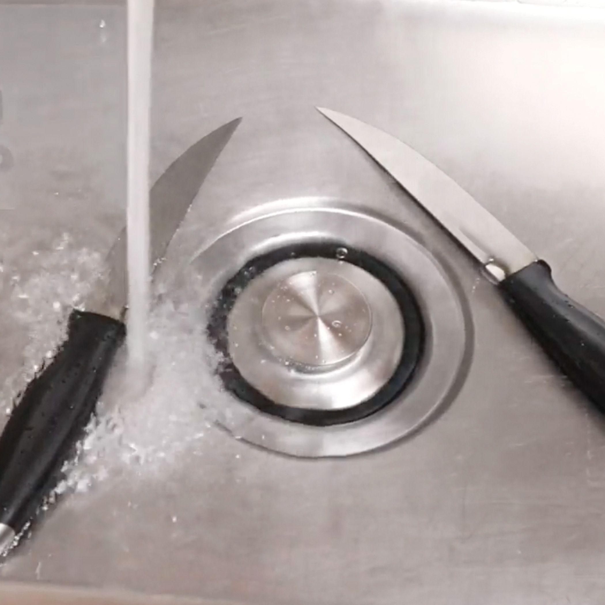 - Tip - insert stopper at an angle to let water and small food particles flow down into the drain while preventing the larger debris like utensils from slipping into the drain