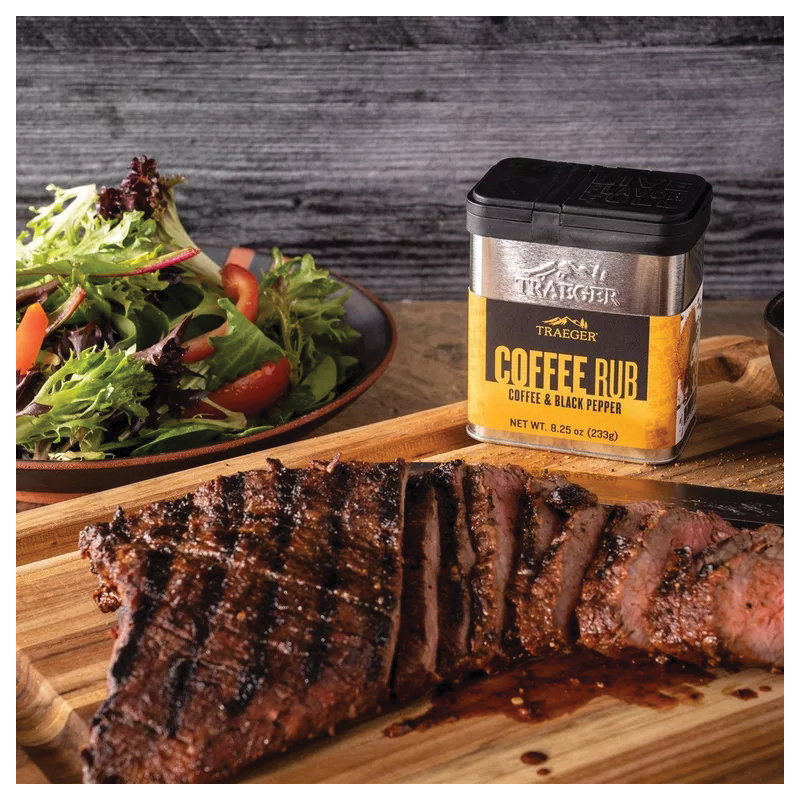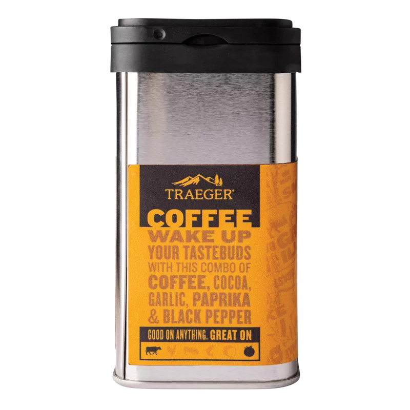 Give your meats a serious wake-up call with Traeger Coffee Rub. More traditional spices like garlic, paprika and black pepper get a boost from coffee and cocoa to add a bold dose of flavor to anything you shake this rub on. Give it a try and see what all the buzz is about.