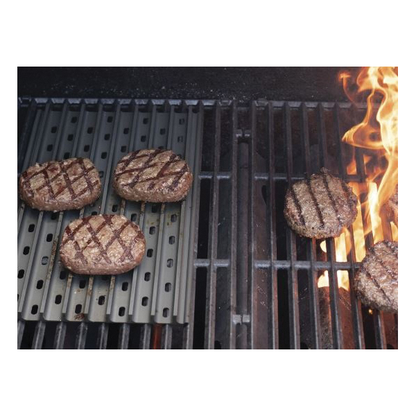 These reversible interlocking panels replace the existing grates on your gas grill and immediately kick your cooking up a notch. Flare ups are no longer a concern as heat concentrates up the raised rails, making burnt, charred and dry food a thing of the past. Your new secret weapon will bring you from everyday grill enthusiast to newly crowned neighborhood GrillMaster known for creating professional level sear marks every time.