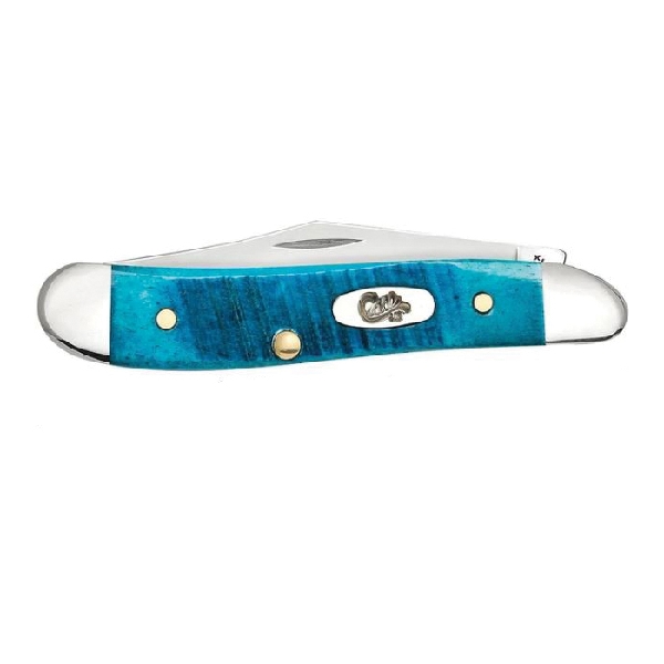 Case 25596 Peanut Knife, 2.1, 1.53 in L Blade, Stainless Steel Blade, 2-Blade, Jigged Handle, Caribbean Blue Handle