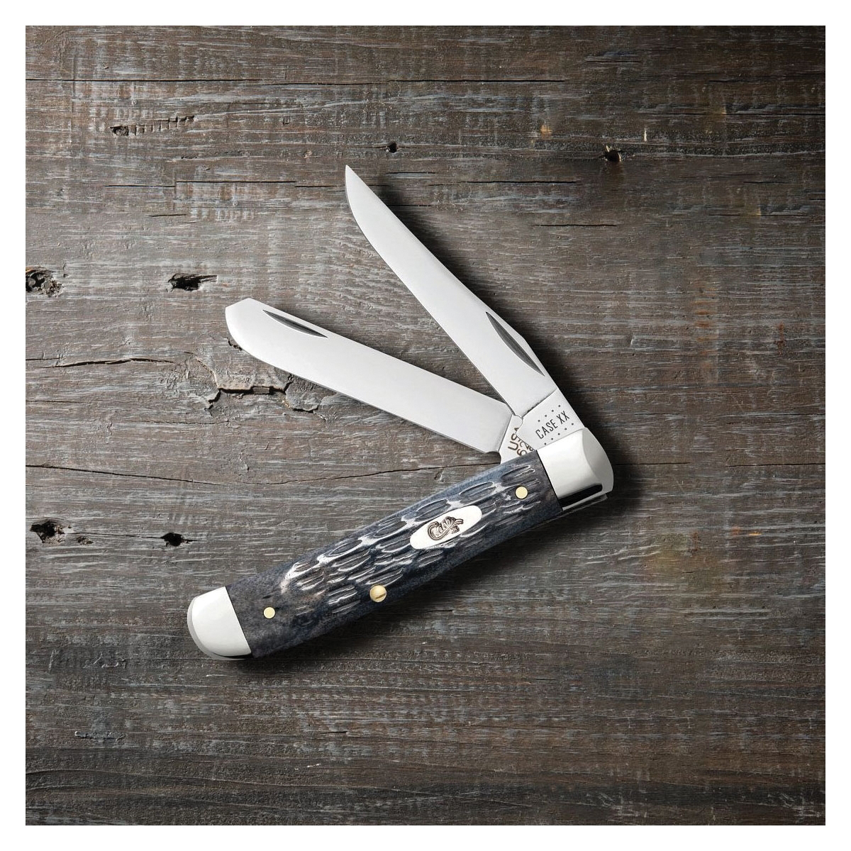 Our distinctive gray bone with extra Pocket Worn® finishing and easy-sharpening chrome vanadium blades will make these knives feel like familiar old friends that are always willing to lend an extra hand. Mini trappers are a smaller version of our trapper carrying two full-length blades, the clip blade and the spey blade. The clip blade is commonly used as a multi-purpose blade and preferred for detail work. The spey blade is commonly used as an all-purpose utility blade. The basic trapping and skinning blades make this a must-have knife for those who trap small game. This knife is constructed with our chrome vanadium (CV) steel. Some knife lovers will settle for nothing less than chrome vanadium blades, since this special formula of alloyed steel is the "original" Case blade steel. Case chrome vanadium blades are known for their edge-holding ability and easy re-sharpening. However, they are less resistant to rusting, pitting and discoloration than stainless steel. We recommend keeping a thin film of oil on the blade to maintain the finish. This ensures that your knife will be around for future generations to enjoy. Comes conveniently packaged in a box. Made in Bradford, PA, USA from domestic and imported materials.