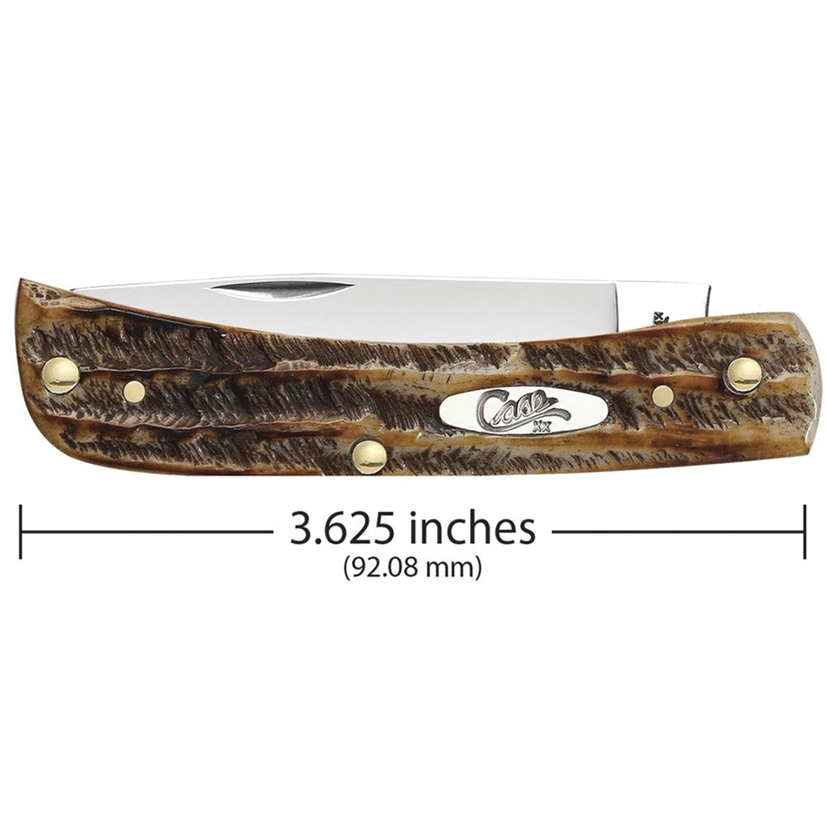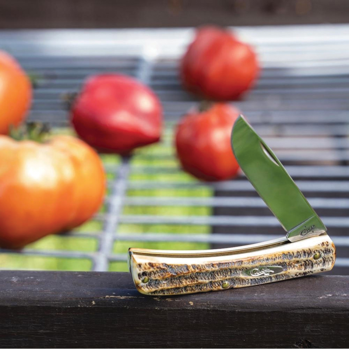 This Sod Buster JR® is a part of the Case 6.5 BoneStag family. Made to look beautifully worn, this genuine bone handle's honey and amber tones are accented with special jigging and hand flamed to look and feel like authentic stag antler. Secondary "6.5" blade tang stampings remind you these knives are extra special. The Sod Buster JR® is smaller than the traditional Sod Buster without compromising durability. The skinner blade is ideal for skinning purposes among other different everyday demands. This knife is constructed with Case Tru-Sharp™ stainless steel which is a special HCS that helps the blades hold an edge longer than conventional steel. It also offers extraordinary blade strength and corrosion resistance. Comes conveniently packaged in a box. Made in Bradford, PA, USA from domestic and imported materials.