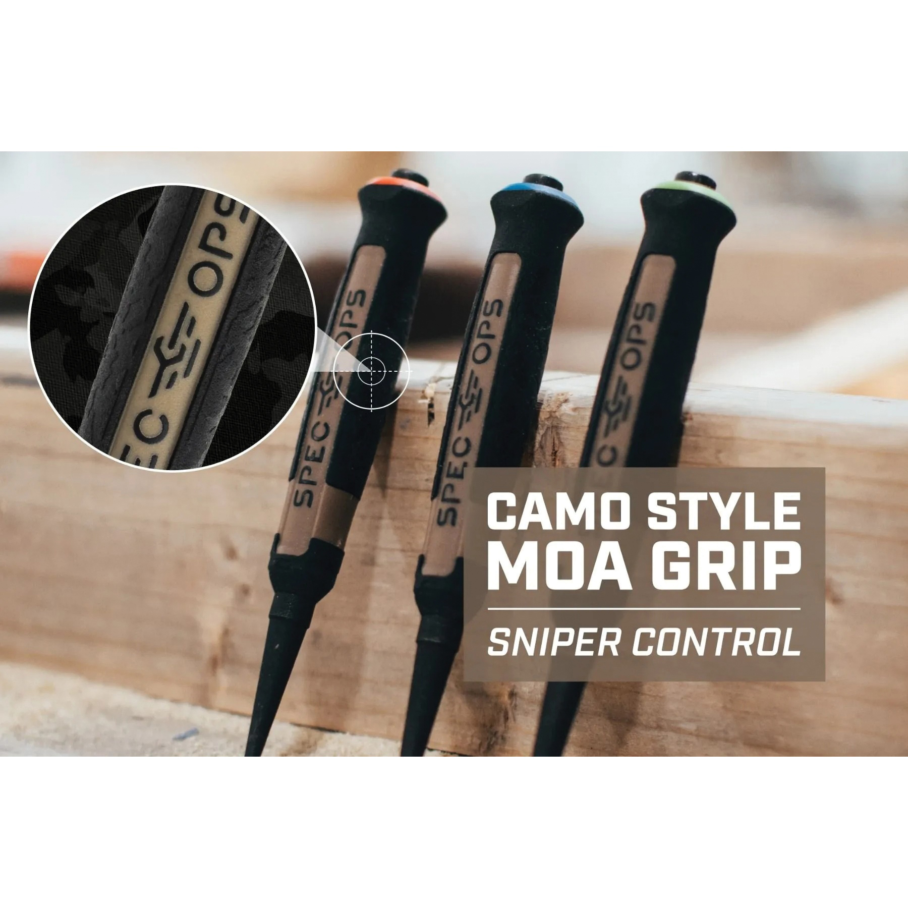 Set nails with elite speed and sniper-like precision with Spec Ops Nail Sets. This three-piece nail set kit includes 1/32, 2/32 and 3/32 in nail sets, ideal for brads to common nails. These precision nail sets are crafted from heat-treated HCS for extreme durability and feature precision ground hollow-point tips for slip-free nail setting. The shock-absorbing MOA grips provide sniper control while the flared end caps protect hands from glancing hammer strikes. Each nail set is color-coded for fast size identification, even when stored in a tool belt. And with a assurance to deliver a lifetime of mission capability on the world's toughest job sites, this nail set kit has been drop-tested at 100 ft to surpass MIL-SPEC standards. All Spec Ops tools are backed by our five-star, hassle-free lifetime warranty and with each purchase made, we support our nation's heroes by donating 3% of proceeds to veteran and first responder causes.