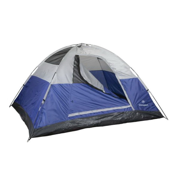 Stansport Dome Tent, Person Capacity: 4, Pole Material: Fiberglass, Blue/White, 96 in L, 84 in W, 54 in H, Includes: Carry Bag