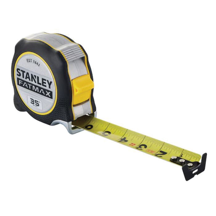 Introducing the STANLEY® Fatmax® PREMIUM™ 35 ft Tape: the single answer to all your measuring needs. This heavy-duty tape is engineered for a multitude of professional applications, delivering precise measuring performance. Designed for ultimate blade control, improved blade retraction and enhanced ergonomics, the tape features an integrated finger brake. The clearly-defined, double-sided black print on the STANLEY® Fatmax® yellow tape enables high visibility and precise vertical and overhead measuring. Equipped with a robust, oversized Beast Hook, users will find this tape achieves an excellent grab on materials of all types. For trade pros working alone, each tape offers a long, straight and strong 17 ft maximum reach, ensuring optimum efficiency. The STANLEY® Fatmax® PREMIUM™ tape also features 6 in of BladeArmor® coating for outstanding hook connection, added strength, and resilience against abrasion and wear on the jobsite. Tape length of 35 ft.