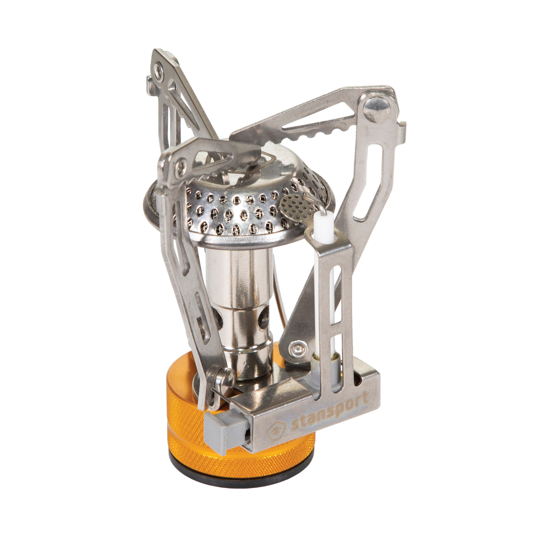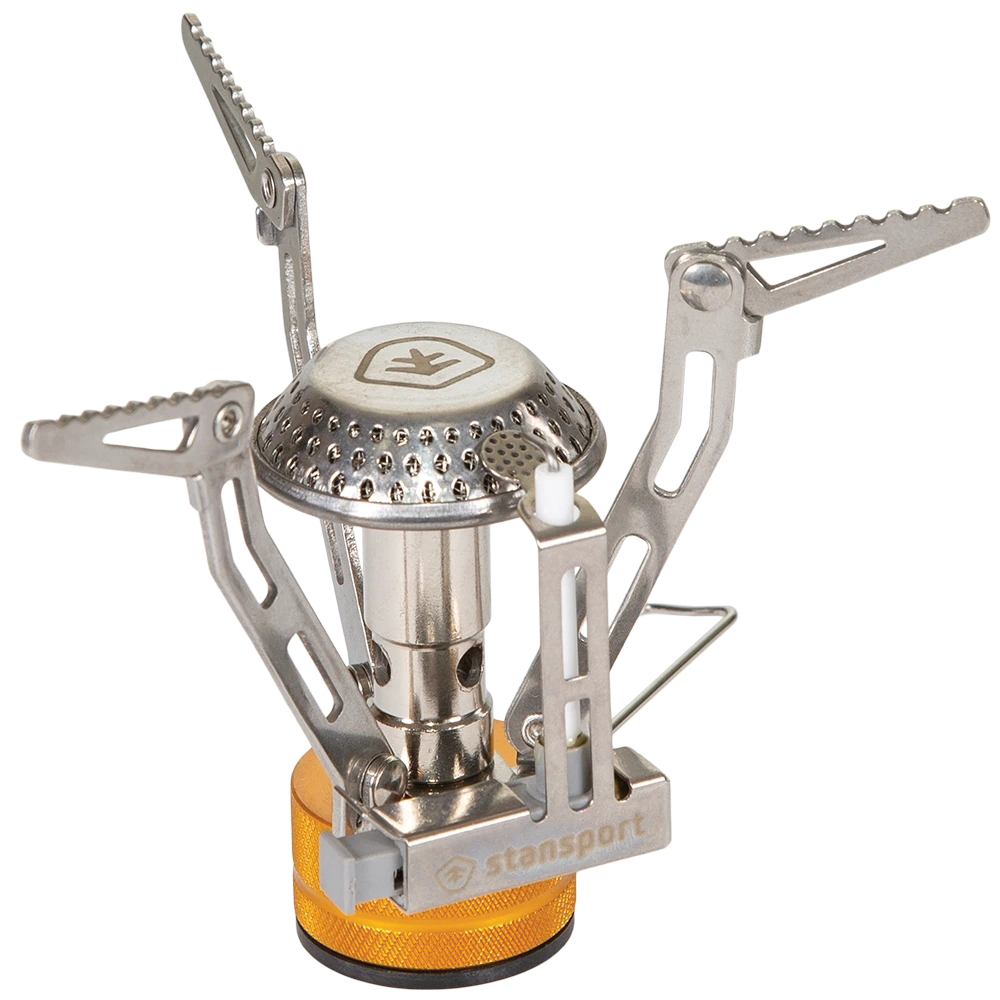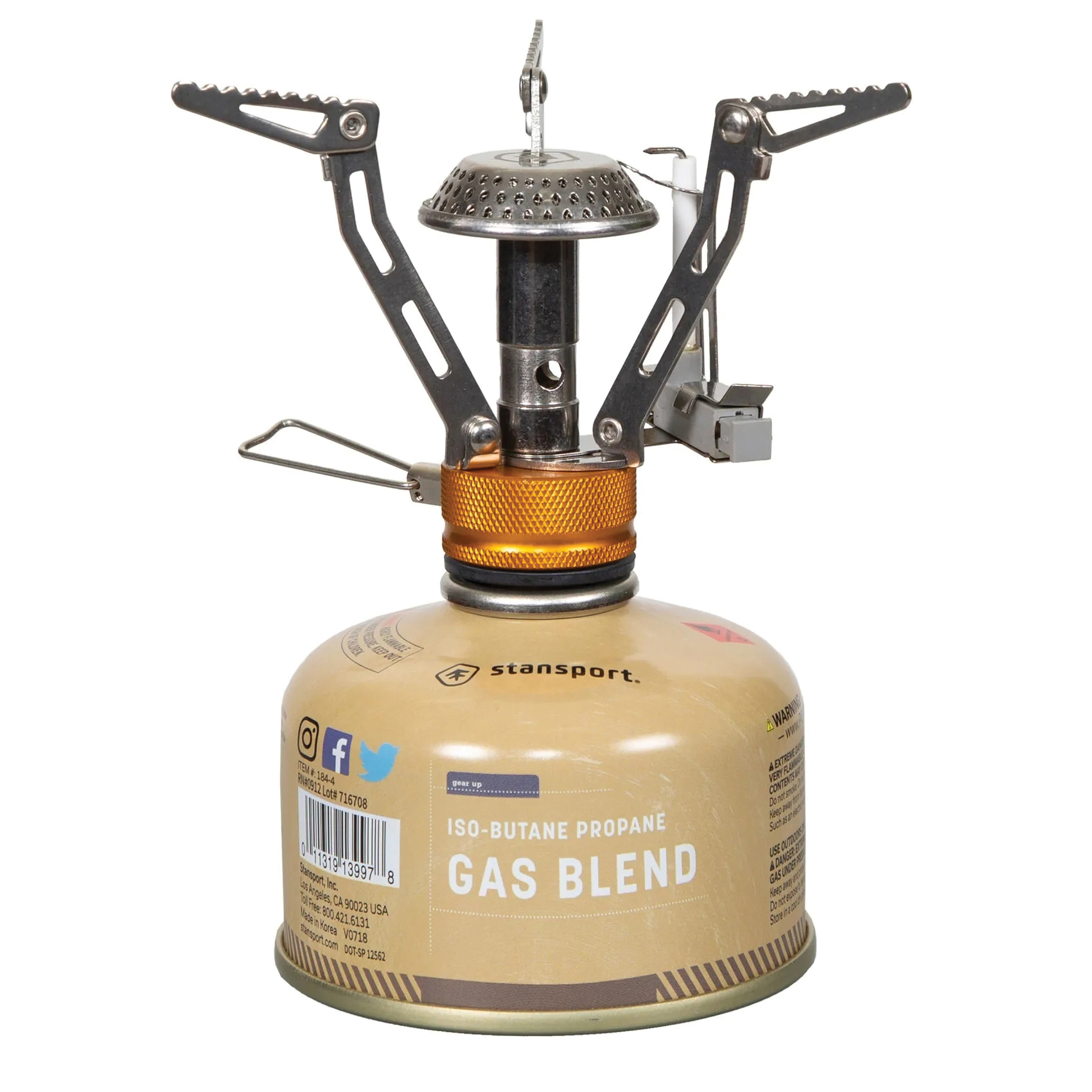 This small, packable and portable butane stove includes fuel and features a large burner head. Precision flame control and serrated pot supports also help make this portable stove safe and efficient with increased pot stability and wide heat displacement. It is built to last with high-quality components.