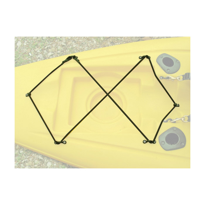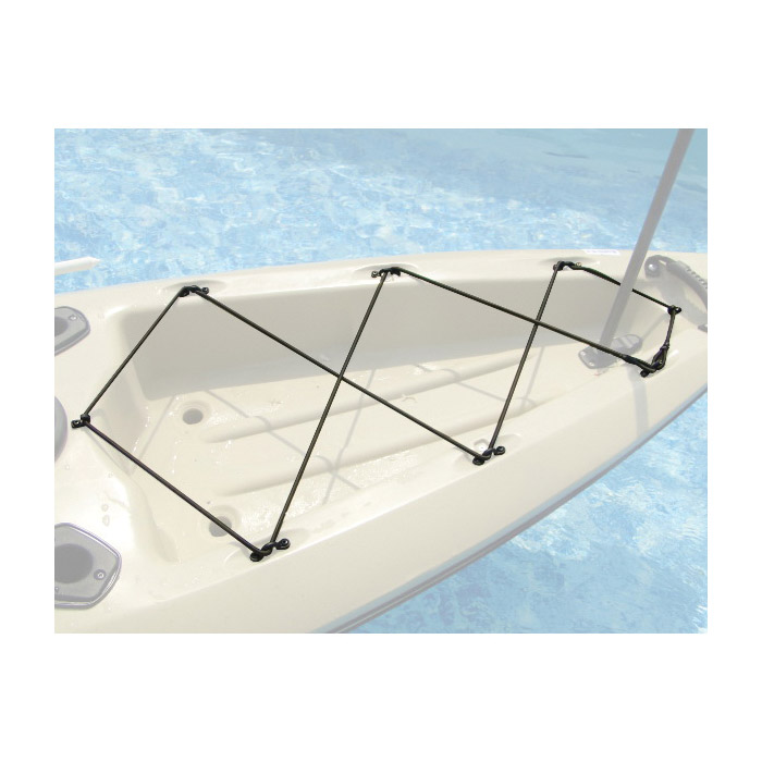 Add or replace the bungee system on the deck of a kayak or canoe with the YakGear deck kit. Bungee on the deck of a boat adds extra storage for more equipment on your adventure. The kit comes with 10 ft of 1/4 in nylon bungee and is equipped with six pad eyes and two J-hooks for deck mounting. As always, this complete kit comes with all stainless steel installation hardware, installation instructions and rigging tips from YAKGEAR. Waterproof silicone recommended, but not included.
