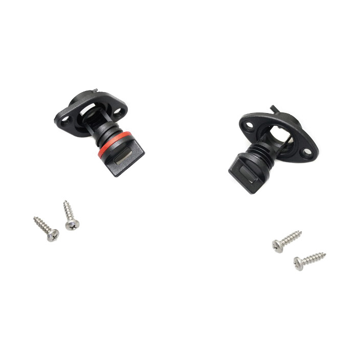 Add or replace the drain plugs on any kayak with the YakGear universal drain plug kit. This kit provides the two most commonly used kayak and paddle boat drain plugs with a wide thread (red washer) and fine thread (black washer) to accommodate most paddlers. Both drain plugs come with the top flange. As always, this complete kit comes with all stainless steel installation hardware, installation instructions and rigging tips from YAKGEAR. Waterproof silicone recommended, but not included.