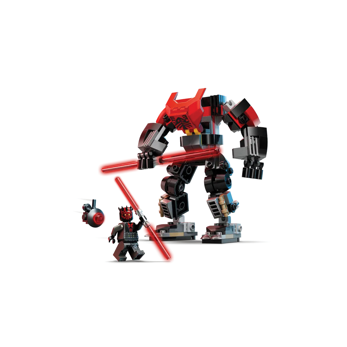 - Darth maul Lego® Star Wars™ minifigure - the Lego® minifigure of this iconic star wars character comes with a double-bladed red Lightsaber™ that can be clipped to the back of the mech