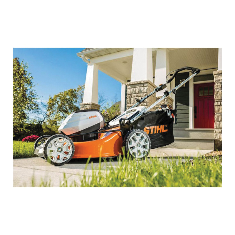 The RMA 510 gives homeowners the performance of a gasoline-powered mower without any of the hassles. Enjoy instant starting, less noise, zero gasoline costs and zero exhaust emissions. It features a 21 in steel mowing deck, so you can cover more lawn faster than previous models. The RMA 510 also includes a holding slot for a second battery, so you can swap batteries and be ready to cut again in seconds. It also features an adjustable handlebar, grass catcher and larger rear wheels for rough terrain. This battery powered lawn mower is great for small to medium suburban yards. Run time may vary-based on battery type, charge level and capacity, model, operating style and conditions. Batteries and chargers can be purchased separately or as a combined set with tool.