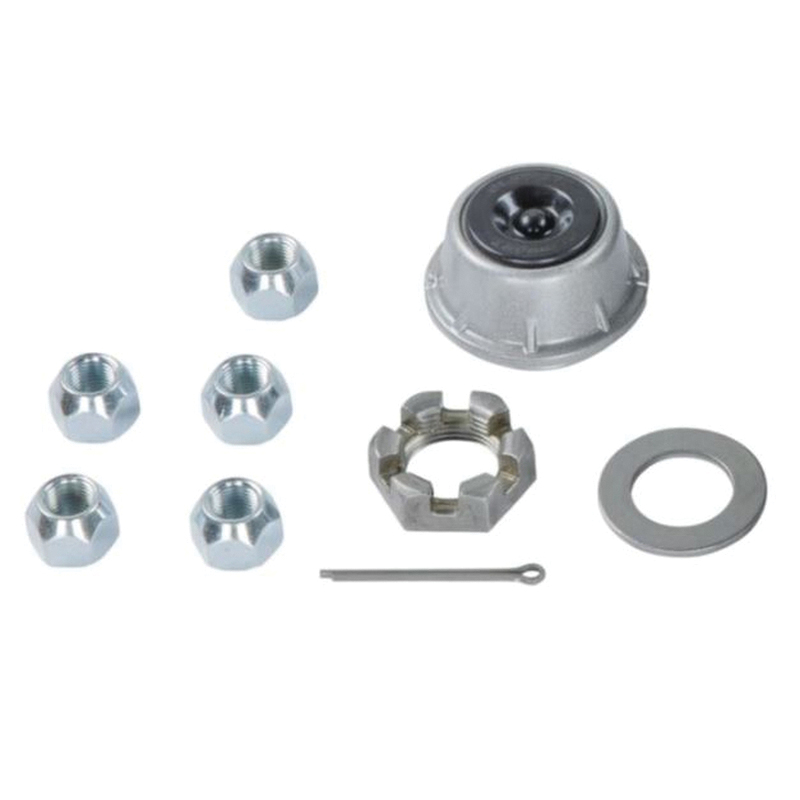 | Includes | : | (1) Brake Hub Assembly, (1) Dust Cap with Plug, (1) 1-3/4 in Cotter Pin, (1) 1 in 6-Slot Castle Spindle Nut, (1) Round Spindle Washer with 1.03 in ID, 1.68 in OD and (5) 60 deg Cone Trailer Lug Nuts |