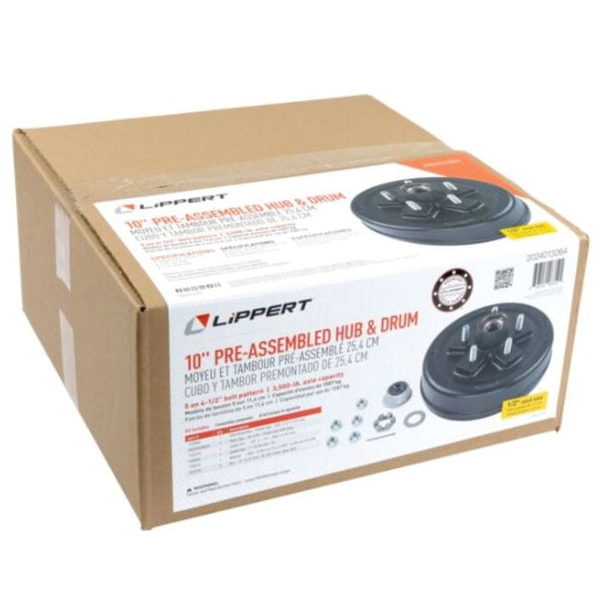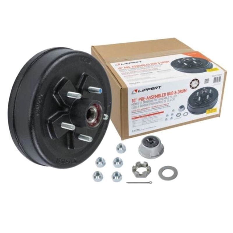 Lippert 2024013264 Brake Drum Hub Complete Kit with Installed Bearings, 3500 lb Withstand, 10 in OD, 5-Bolt