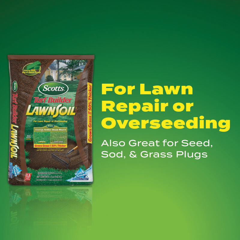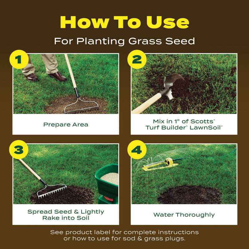 Grow grass up to 50% thicker than native soil guaranteed with Scotts® Turf Builder® Lawnsoil™. The soil contains Scotts® starter® brand fertilizer to provide essential nutrients for early grass development and stronger roots. Plus, it contains a blend of rich, composted materials to create an excellent seed-growing environment. For optimal results, use the Lawnsoil™ with Scotts® Turf Builder® grass seed and get greener grass faster.