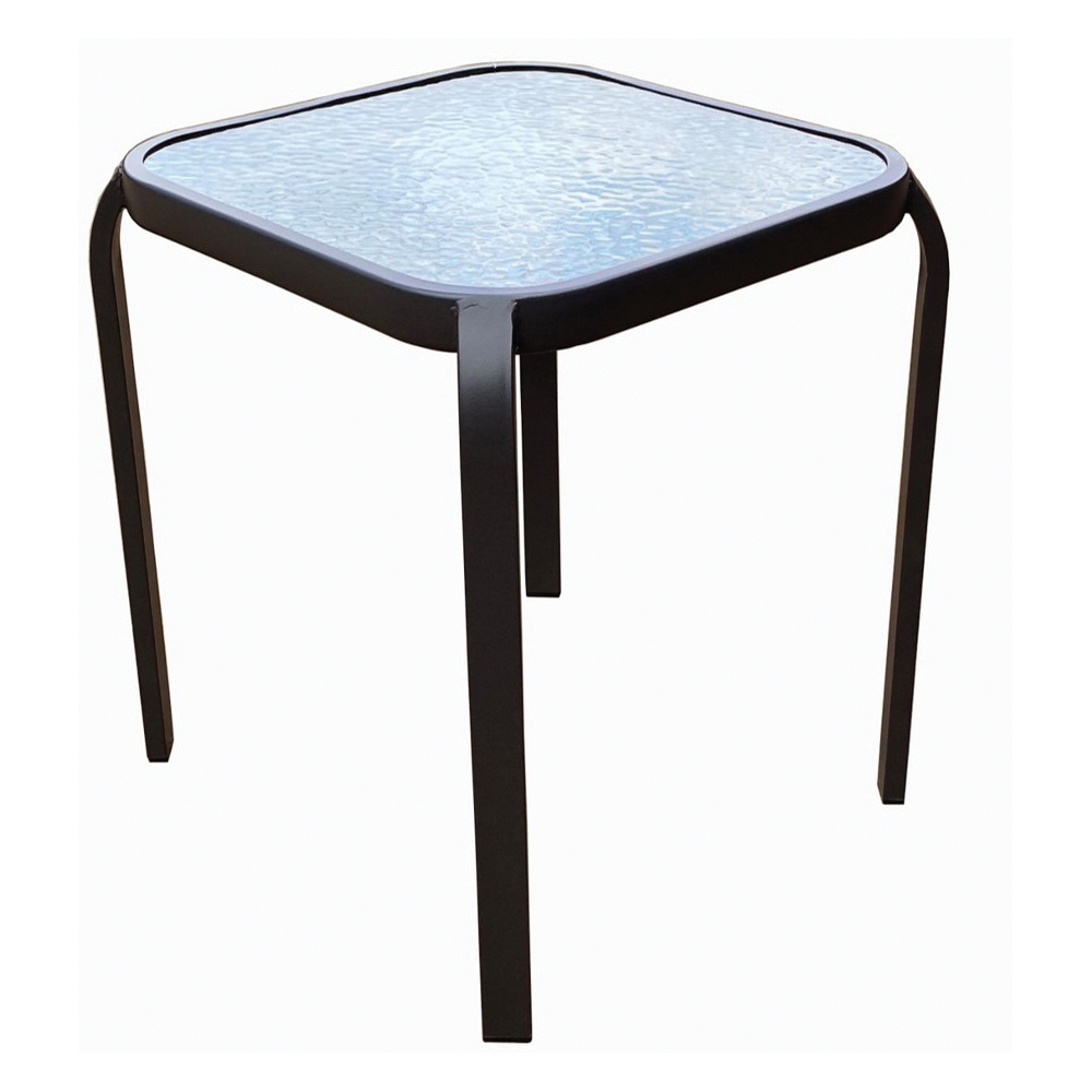 This 16 in square side table has a waved tempered glass top and is a great center piece for any outdoor area.