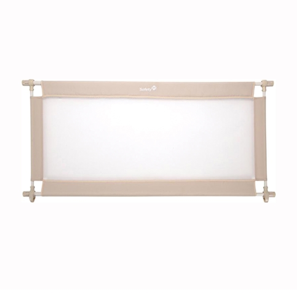 Ideal for wide doorways and open spaces. Pressure mounted - no hardware required. Stretches from 38 to 60 in W. Machine washable. Stain-resistant protection. Includes drawstring storage and carry bag.