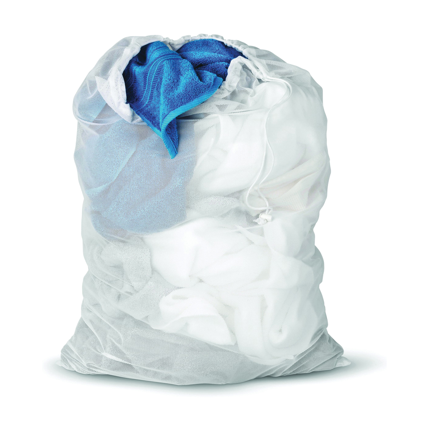 For going all the way to the laundromat or just down the hall. Use alone, as a replacement bag for most hampers or sorters or as a wash bag for larger items such as linens. Sturdy, washable mesh material lets clothing breathe and helps keep mildew at bay. White drawstring with cord lock. The drawstring closure prevents spilling and doubles as a carrying strap making this laundry bag quick and easy-to transport. Washer and dryer safe.