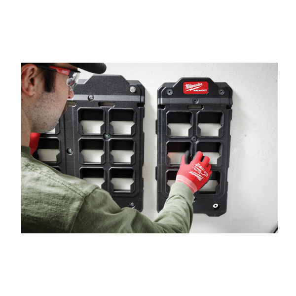 Our PACKOUT™ compact wall plate features quick-alignment tabs to make installing rows and columns of multiple wall plates easier. This compact wall plate is constructed with metal reinforced mounting points and impact-resistant polymers that ensure secure mounting in shop, transit and site environments. Our compact wall plate has a 50 lb weight capacity when mounted in the shop and a 25 lb when mounted in vehicles. As part of the PACKOUT™ modular storage system, the PACKOUT™ compact wall plate allows you to customize your storage system and keep your storage solutions organized. Milwaukee® PACKOUT™ is the industry's most versatile and durable modular storage system.