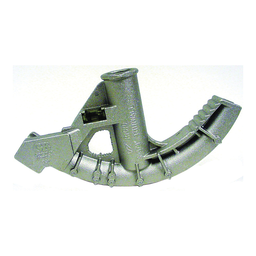 Gardner Bender's EMT/rigid aluminum hand bender bends 3/4 in EMT and 1/2 in rigid conduit. The built-in acrylic level gauge helps make precise bends in half the time. Includes embossed sight lines for 10 deg, 22.5 deg, 30 deg, 45 deg, 60 deg and 90 deg bends. The patented Vise-Mate holds conduit steady as it is cut to the appropriate size. The package includes a hand bender head and a detailed hand bending manual. The manual clearly illustrates various bends and how to achieve them including the mathematical formulas to complete more complicated bends. Also available with a handle (Model #931H). Alternative head size available in Model #930B for 1/2 in EMT. High-quality pre-threaded bender handle available separately (Model #BH-75 - 3/4 in NPT x 38 in long).