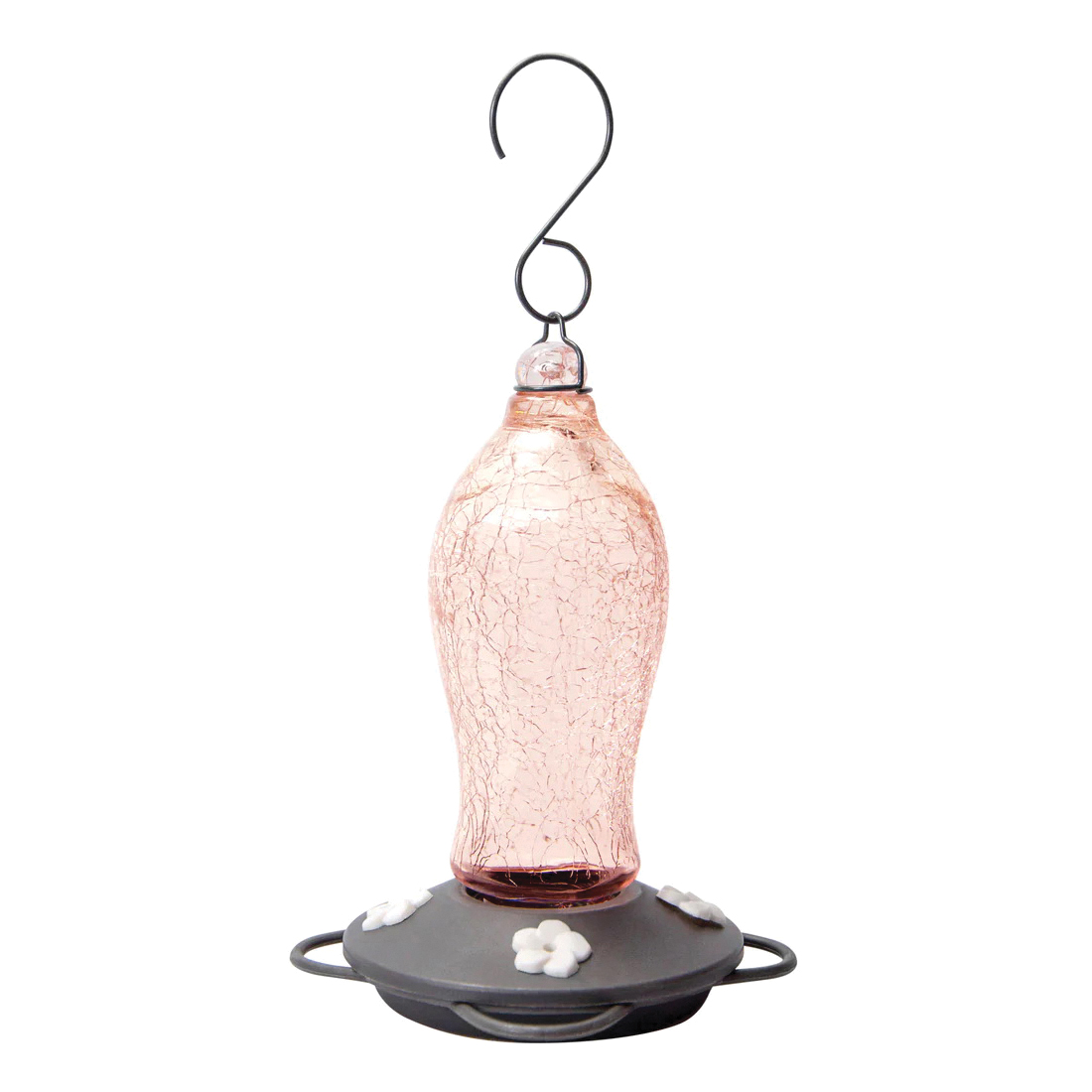 Nature's Way Artisan Gravity Bird Feeder, Design/Theme: Blush Crackle, Food Capacity: 16 oz, Food Type: Nectar, Number of Ports/Perches: 4, Glass, 5-1/2 in L, 5-1/2 in W, 7-1/2 in H, Hanging Mounting, Attracts: Hummingbirds, Includes: Hook