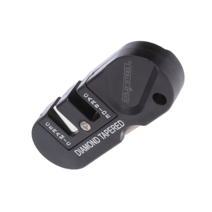 The three-in-one knife sharpener has two pre-angled sharpening stones. One of the stones is ceramic and the other is carbide. The carbide edge can provide you with a quick sharp edge and the ceramic sharpener can give you a finer, razor-sharp edge. Additionally, there is a fold-out, diamond coated tapered rod for sharpening serrations or small gut hooks. The three-in-one knife sharpener is lightweight and includes a lanyard hole for easy carry.