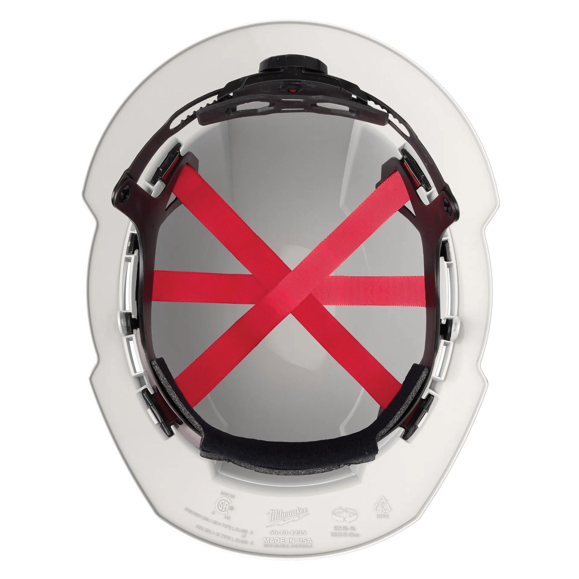 Our full brim hard hats with six-point suspension - Type 1 is designed to adapt to your jobsite. Four Bolt™ accessory slots and two universal accessory slots allow you to easily integrate additional personal protection equipment and accessories onto the hard hat. This Milwaukee® hard hat includes an adjustable swinging ratchet for better comfort and has a six-point ratcheting suspension for quick adjustment. The head protection also includes a moisture-wicking sweatband to stay-cool and dry fast. These construction hard hats are ANSI/CSA approved and can be customized by adding your logo.
