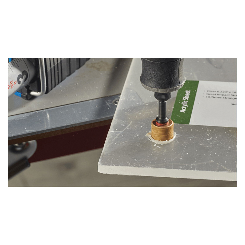 - Functions as both a sanding drum and a hole saw capable of plunge cutting into a variety of materials