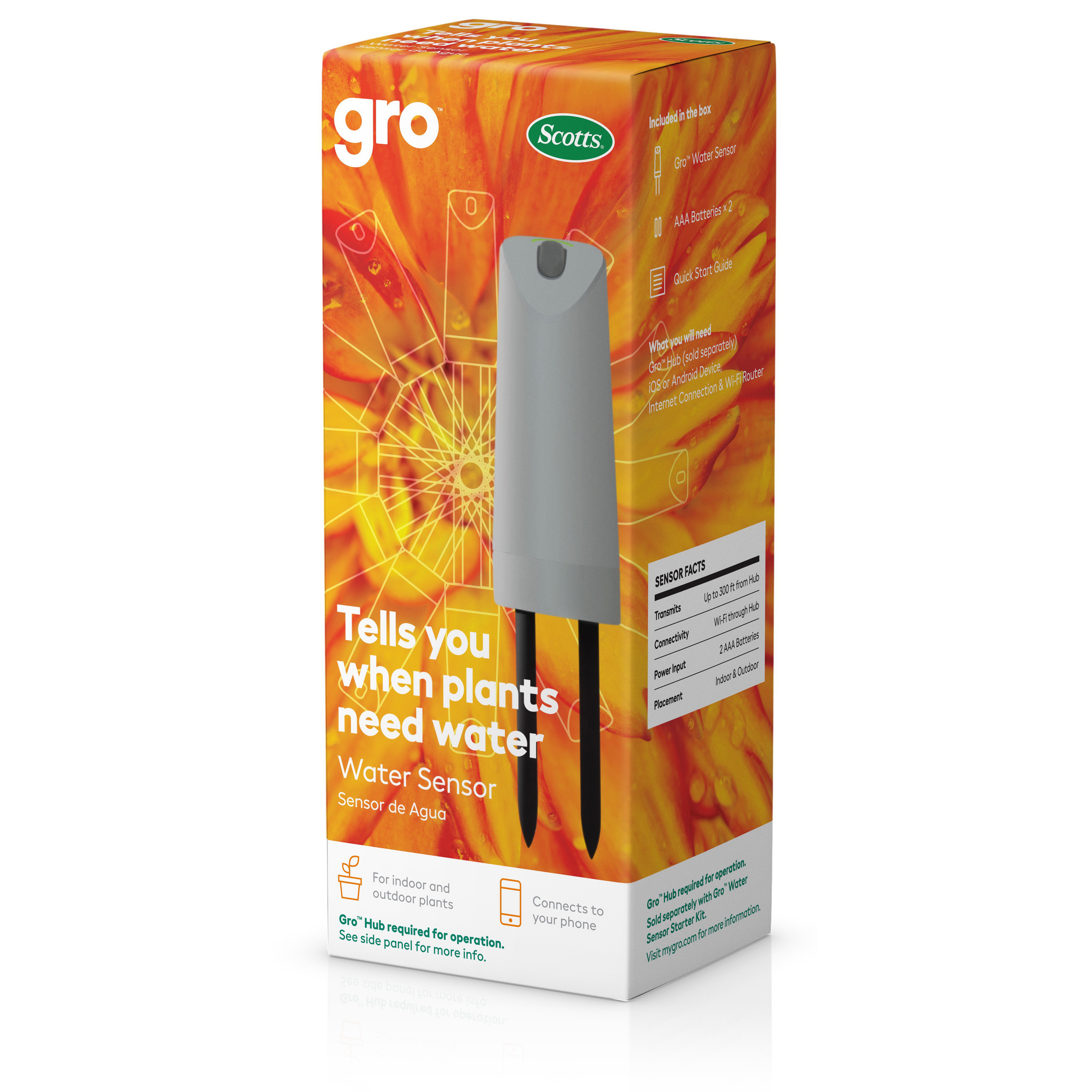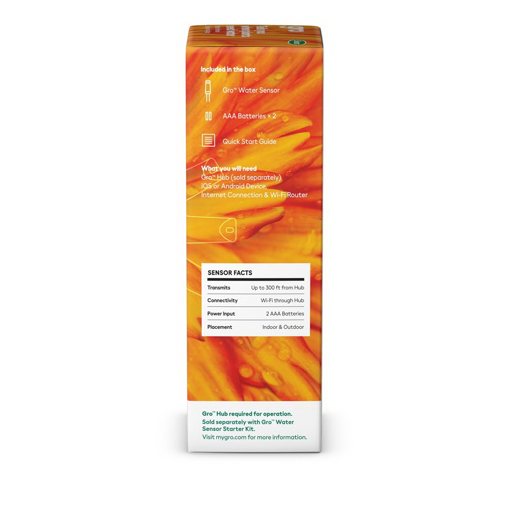 Gro™ makes watering simple and efficient for everyone. Simply place the sensor in the soil indoors or outdoors and the system will calibrate to the plant's watering needs using our catalog of over 50,000 plants. Gro™ continually monitors your garden and alerts you when water is needed. Set up your alerts through push notifications or email. Gro™ hub is required and sold separately with Gro™ water sensor starter kit.