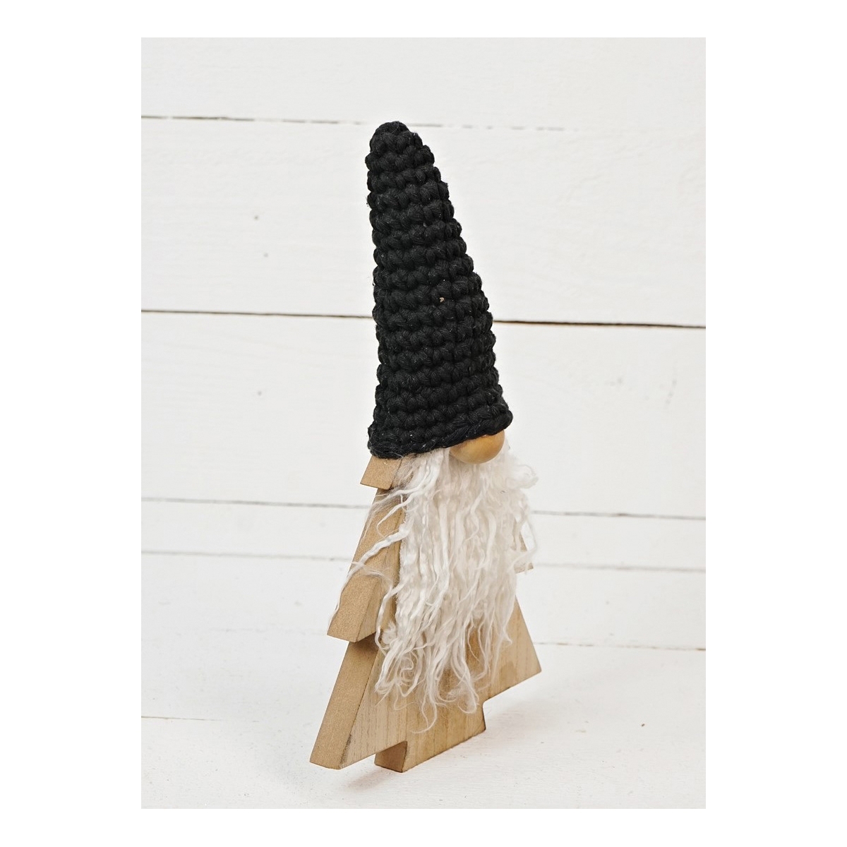 Impressive ENTERPRISES Christmas Figurine, Nordic Knome on Tree Body with Black Hat, Wood, 7 in Width, 13 in Height