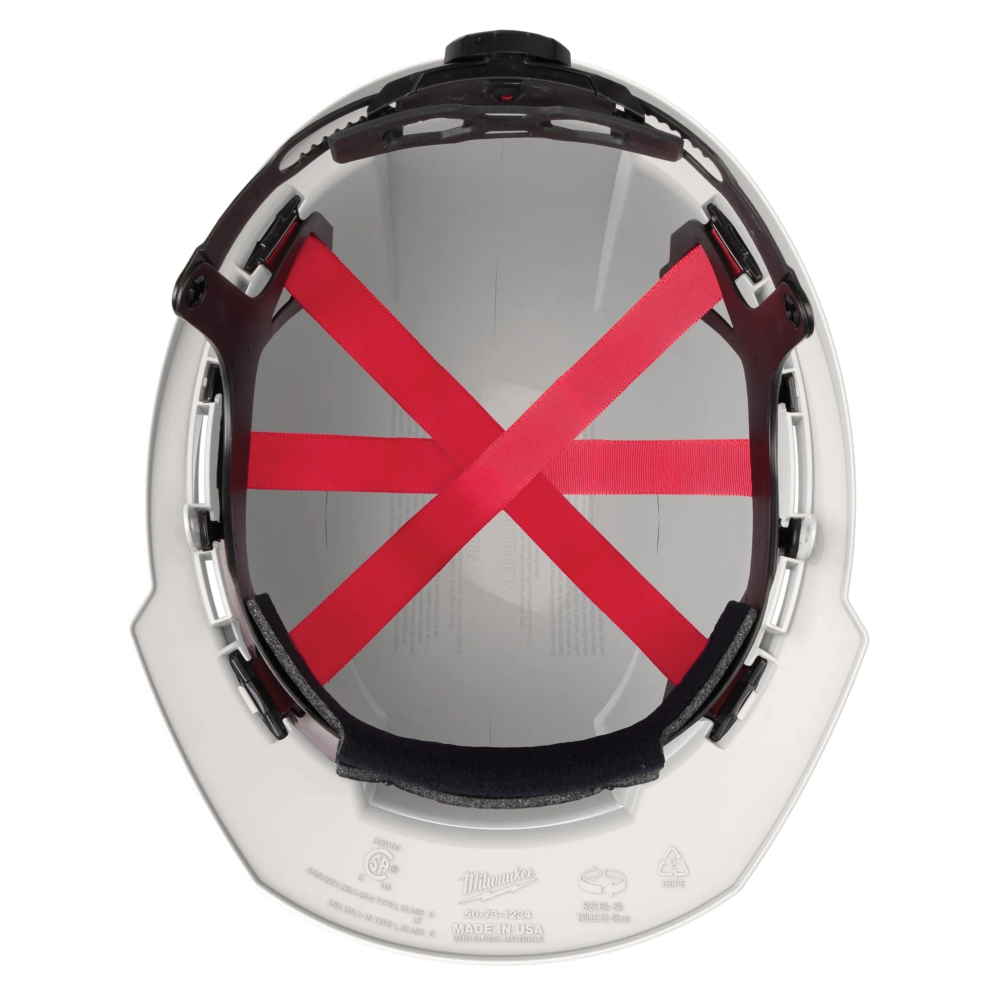 Our front brim hard hats with six-point suspension - Type 1 is designed to adapt to your jobsite. Four Bolt™ accessory slots and two universal accessory slots allow you to easily integrate additional personal protection equipment and accessories onto the hard hat. This Milwaukee® hard hat includes an adjustable swinging ratchet for better comfort and has a six-point ratcheting suspension for quick adjustment. The head protection also includes a moisture-wicking sweatband to stay-cool and dry fast. These construction hard hats are ANSI/CSA approved and can be customized by adding your logo.