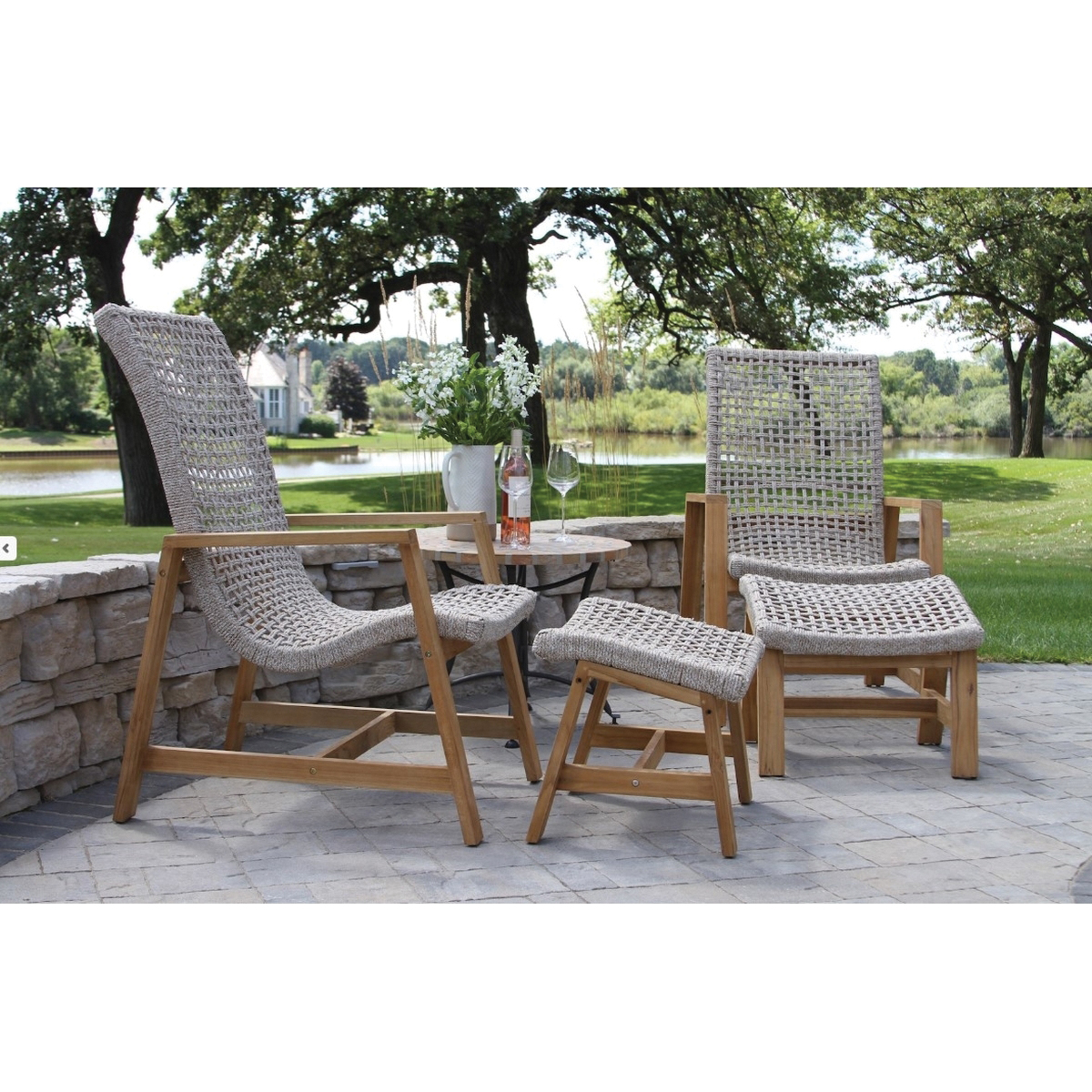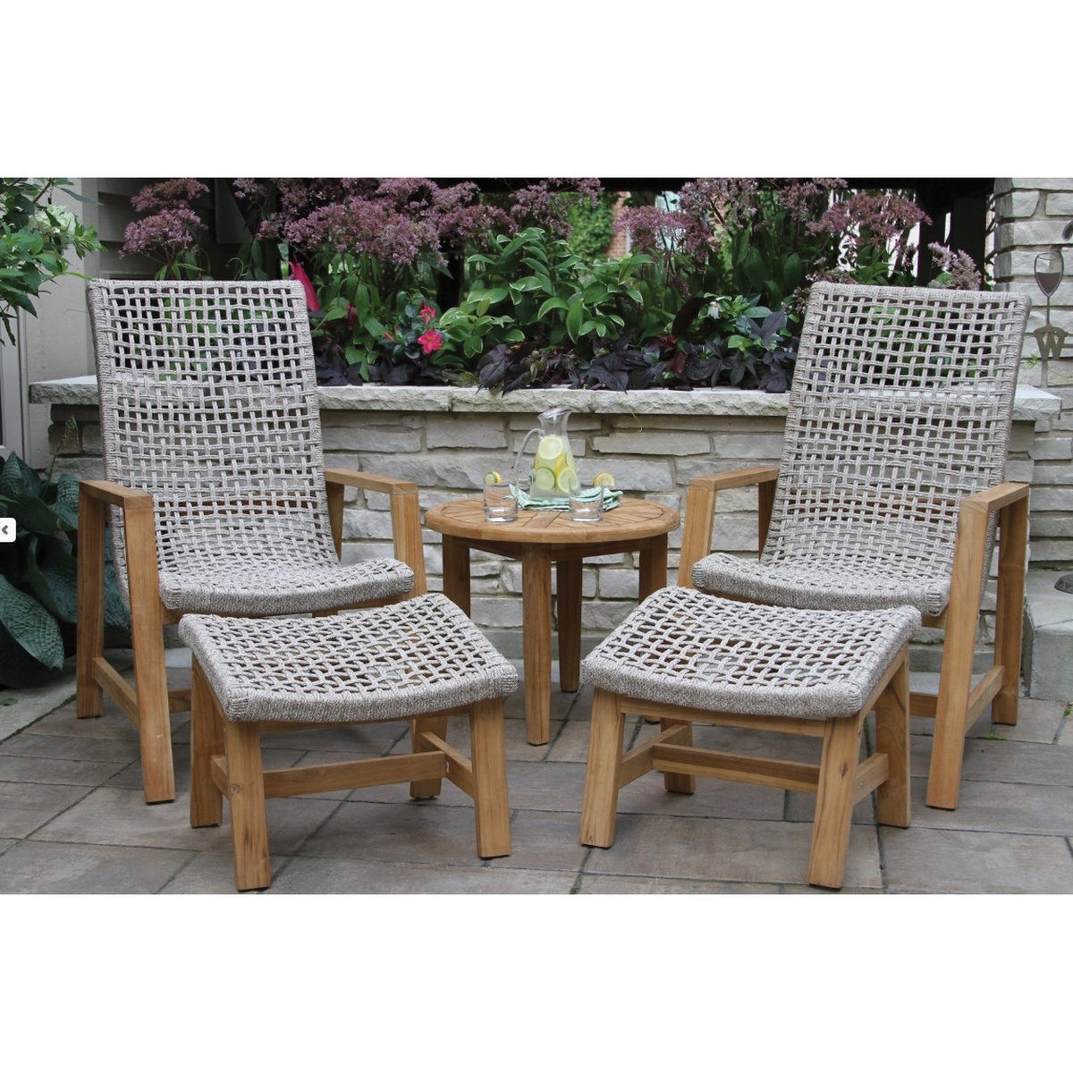 The outdoor interiors rope loungers are a ideal blend of luxury style and ideal comfort. The unique shape and material give this lounger a one-of-a-kind feel pair with matching rope ottoman (TNA2188) for a complete set. The outdoor interiors teak and rope basket lounger is crafted from the highest quality materials starting with all-natural plantation grown FSC certified teak hardwood. The chair is handwoven with premium double spun UV stabilized polyester fiber with an inner nylon cord around teak and powder-coated aluminum frame for strength and lasting durability. This soft light-ash-toned rope lounger is designed and manufactured for outdoor use. It is abrasion-resistant with an impressive style woven around powder-coated aluminum and teak frames.